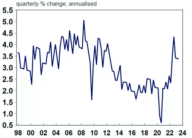 Wages should grow more strongly in the September quarter due to the impact from the increased minimum and award wages brought in on 1 July 2023.