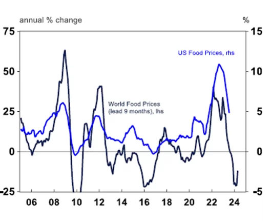 There’s a risk that El Niño weather patterns will lead to higher Australian agricultural prices over the next 3-6 months. Outside Australia, El Niño also tends to be inflationary as non-fuel commodity prices rise, fuel prices increase (coal and crude oil demand rises as there’s lower output from hydroelectric power plants) and governments may decide to restrict supply of agricultural commodities.